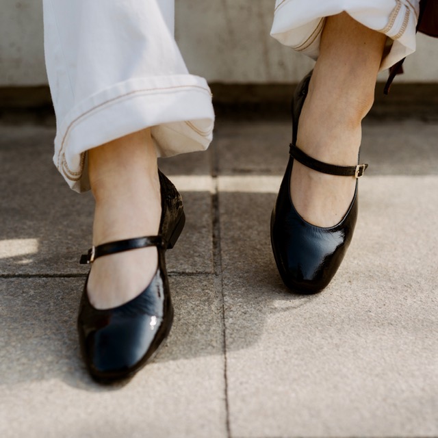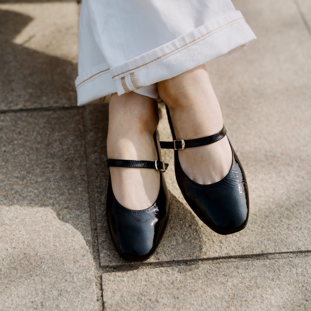 Czarne lakierowane baleriny z ozdobnym paseczkiem na podbiciu