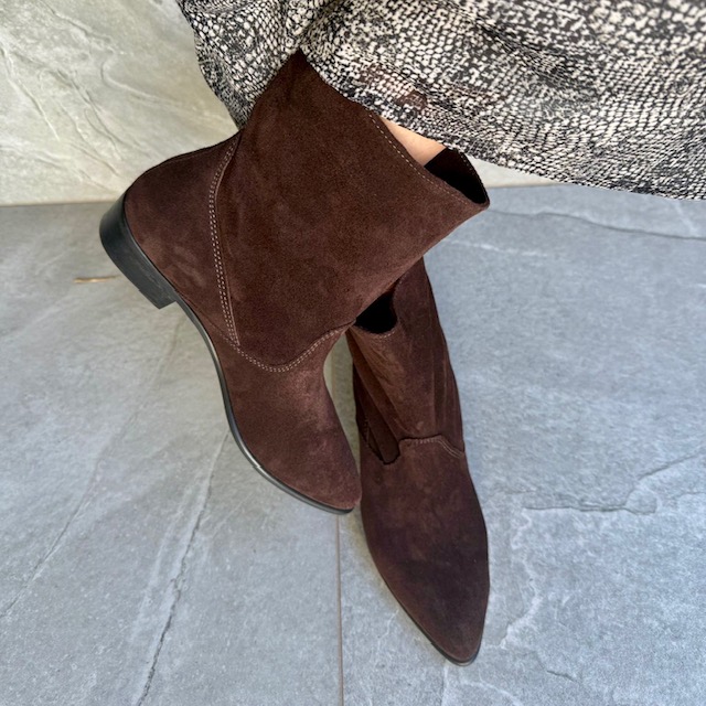 Najmodniejsze w tym sezonie bardzo wygodne botki z naturalnego weluru.