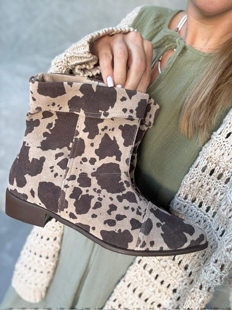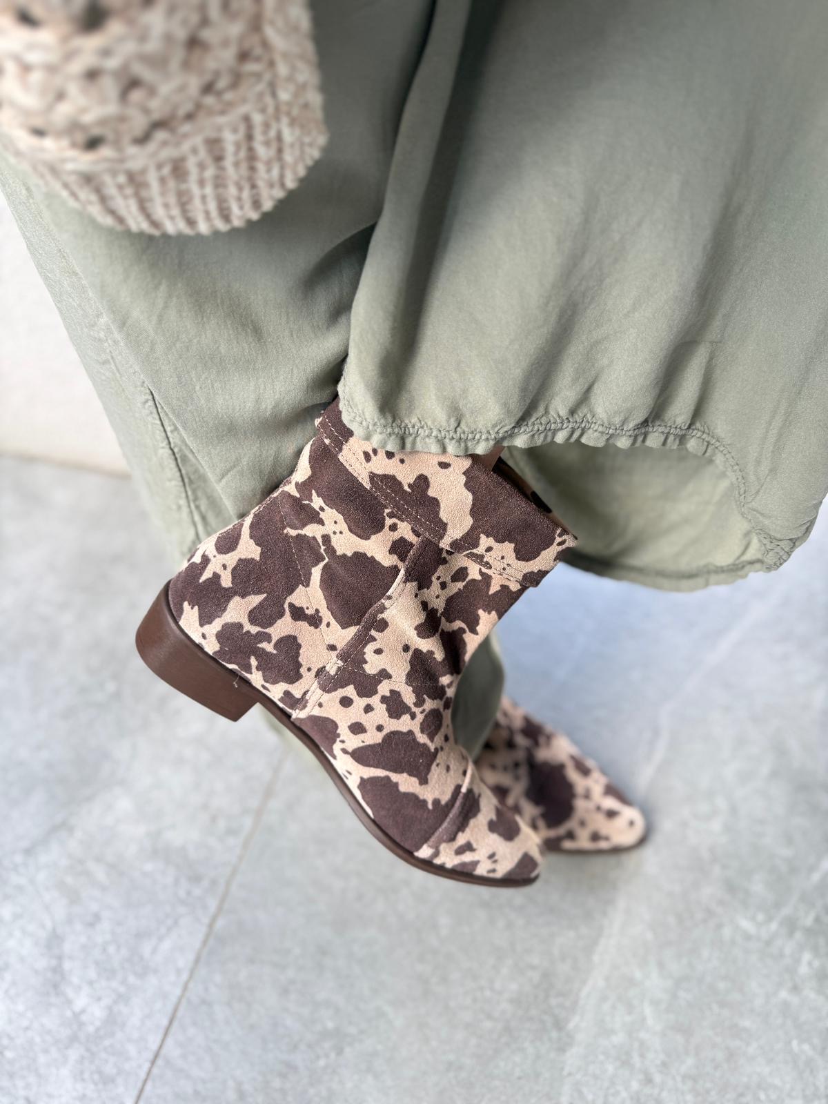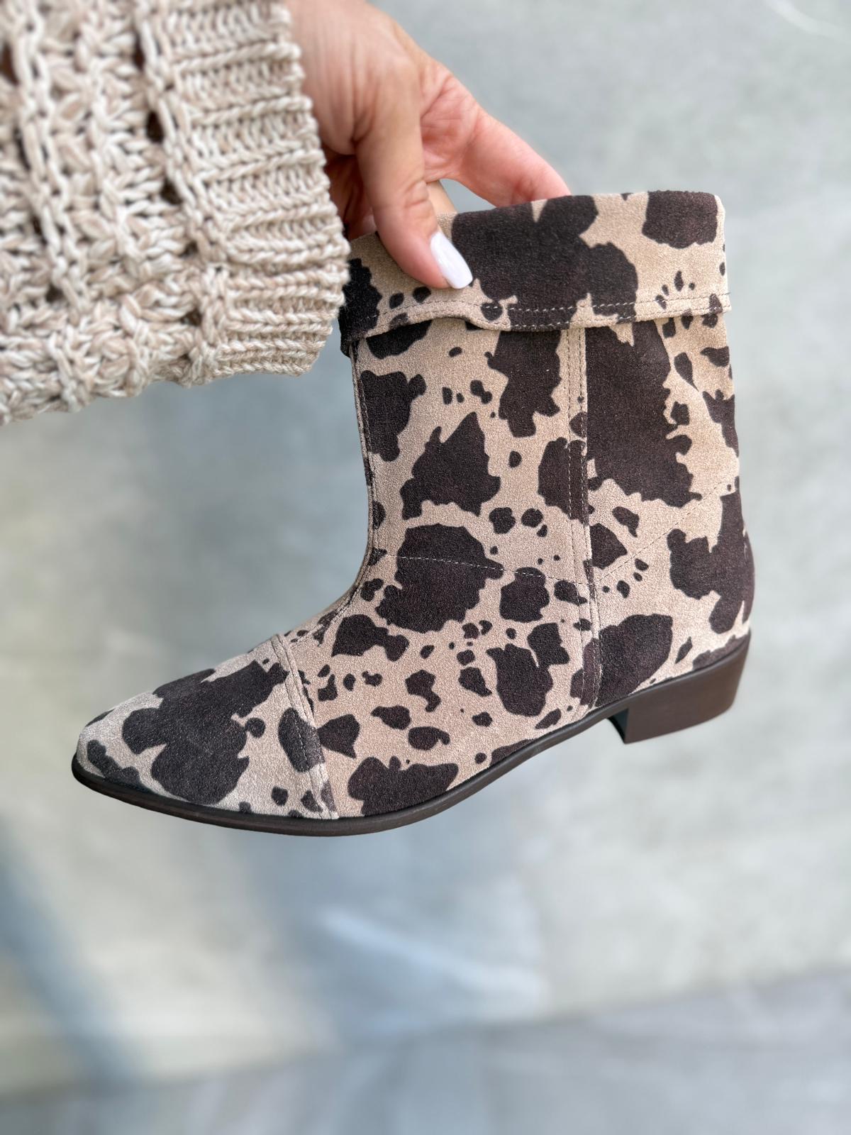 Najmodniejsze w tym sezonie bardzo wygodne botki ze skóry inspirowanej łaciatą krówką